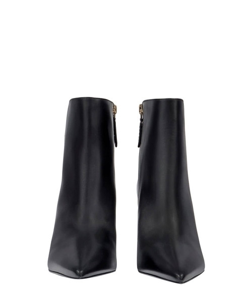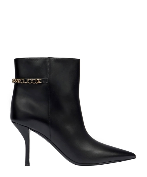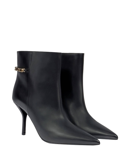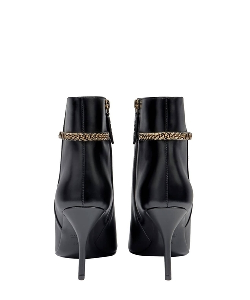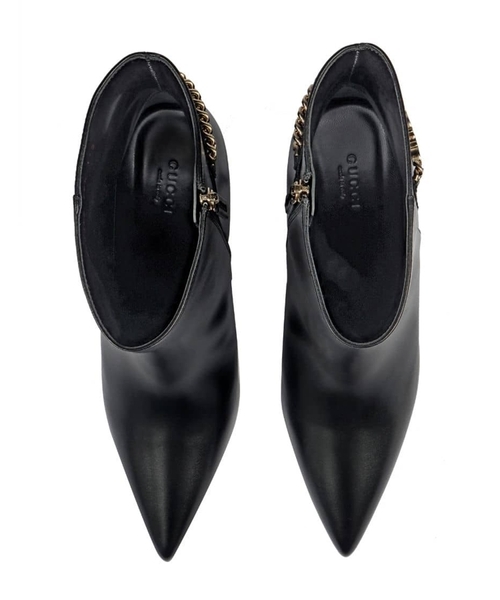 Модель выполнена из 100% кожи и отличается острым носком и высоким тонким каблуком, визуально удлиняющим ноги. Золотистая цепочка с надписью Gucci на боковой части придаёт дизайну роскошный акцент. Идеальный выбор для вечерних мероприятий или городских образов, эти сапоги добавят вашему гардеробу вечную элегантность.