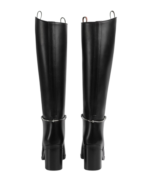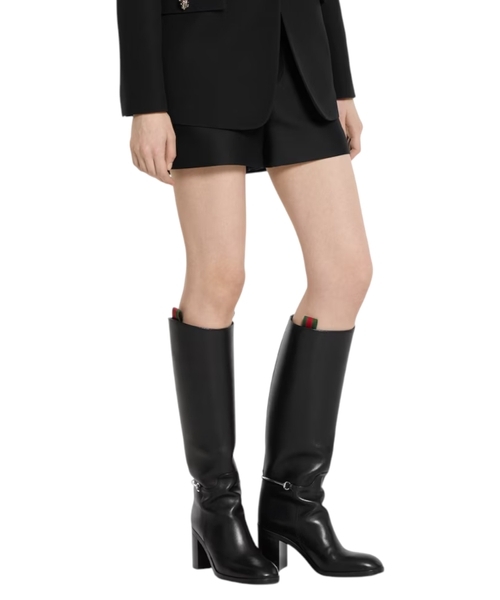 Сапоги от Gucci с культовой деталью Horsebit — это воплощение элегантности и утончённого итальянского стиля. Выполненные из гладкой высококачественной кожи, они отличаются лаконичным силуэтом, подчёркивающим стройность линии ноги. Знаковая металлическая деталь Horsebit в серебристом оттенке придаёт модели изысканный акцент и отсылает к легендарному наследию бренда. Удобные боковые петли облегчают надевание, а устойчивый каблук высотой 85 мм добавляет образу женственности и благородной утончённости.
